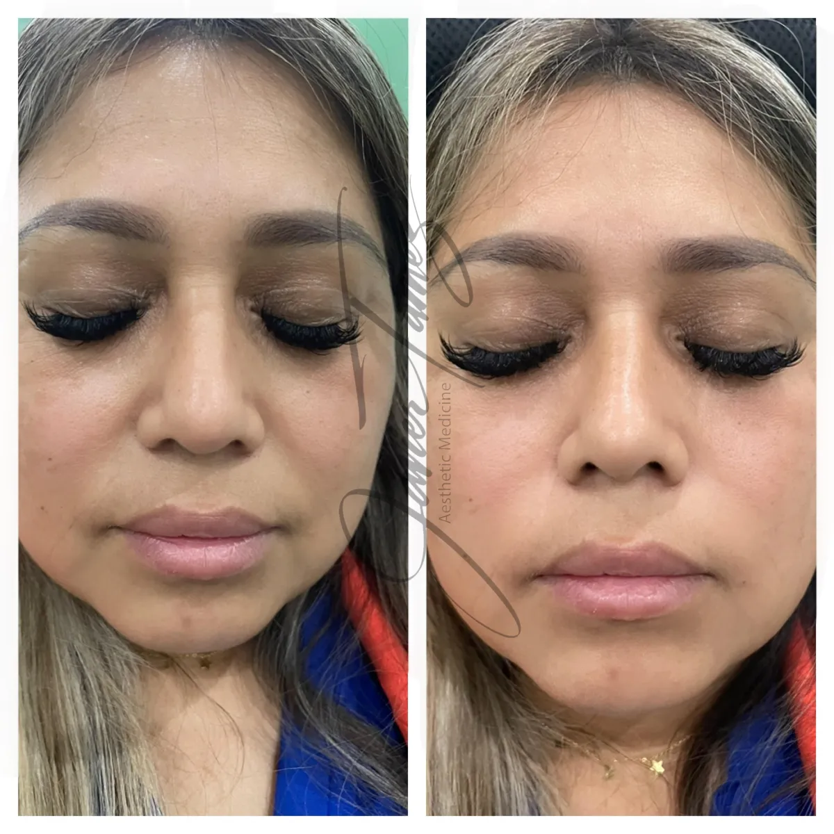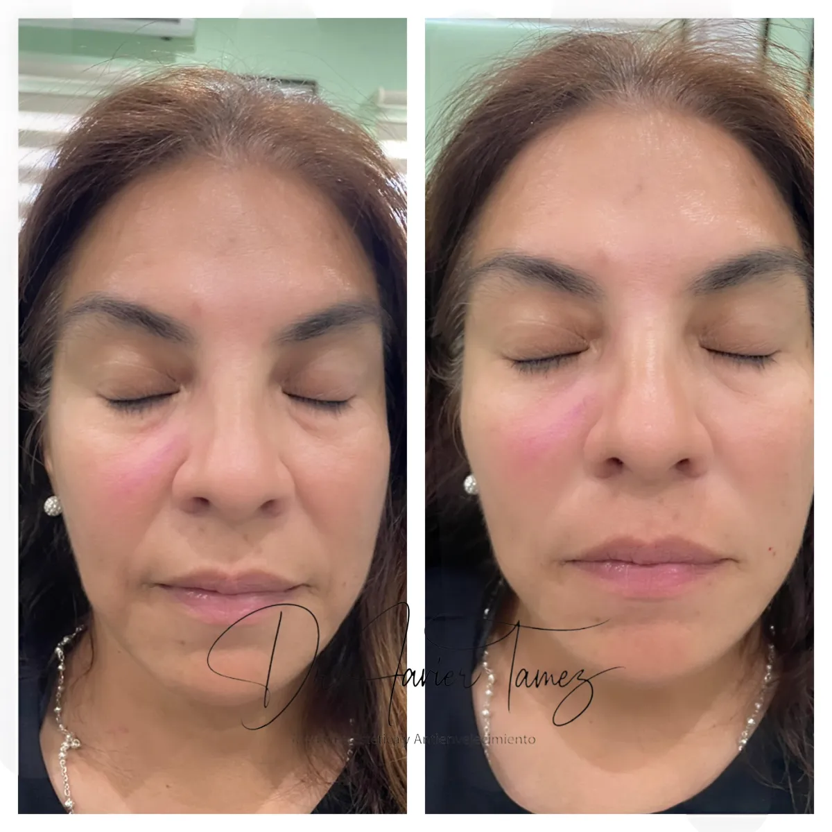 Utilizando ácido hialurónico, se rellena y suaviza el área bajo los ojos, logrando una apariencia más fresca y rejuvenecida.